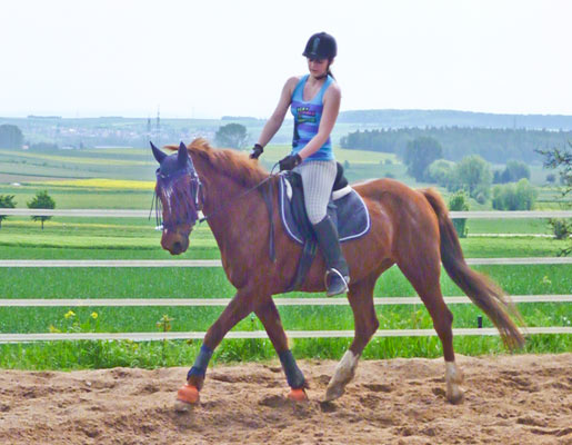 Rufname: Ninjo Rasse: Deutsches Reitpony Geboren: 1994 Stockmaß: 152 cm Auf dem Berghof seit: 2012 Ausbildung: Therapiepony, Jugendwettbewerbe , vielseitige Ausbildung Ninjo wurde als Fohlen von der Vorbesitzerin gekauft, und als Therapiepony ausgebildet und eingesetzt. Aus privaten Gründen gab sie das therapeutische Reiten auf, und suchte für Ninjo ein neues zu Hause in dem er seinen Job weiterhin ausüben kann. Ninjo ist deshalb in allen Bereichen bei uns einsetzbar, nach anfänglichen Schwierigkeiten erfüllt er seinen Job nun stets zuverlässig. Charakter: Gemütlich, umgänglich und zuverlässig / Ein richtiger Kumpeltyp der selbst ängstlichen Reitern ein sicheres Gefühl gibt. zurück ![]() ![]() |