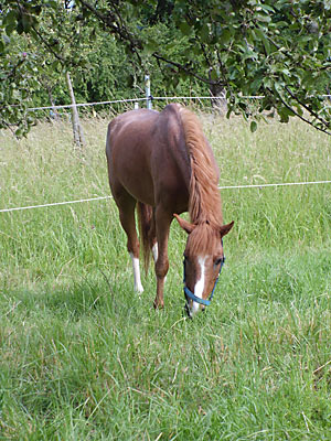 Rufname: Sophie Rasse: Pony Geboren: 1993 Stockmaß: 128 cm Auf dem Berghof seit: 2009 Ausbildung: Vielseitig Sophies ehemalige Besitzer kauften sie als Kinderpony, erlebten viele schöne Jahre mit ihr, als sie zu groß für Sophie wurden, übergaben sie ihr Pony dem Berghof. Um ihr eine Zukunft als Wanderpokal zu ersparen. Auch unsere Sophie erkrankte an einer schweren Infektion, schon als Früh-Rentnerin abgeschrieben, belehrte sie uns eines besseren und nahm ihren Job wieder auf. Charakter: Unsere Miss Sophie, macht ihrem Namen alle Ehre, und möchte auch so behandelt werden. Beim reiten passt sie stets auf ihre kleinen Reiter auf, und stellt sich individuell auf ihr Können ein. Top Schulpferd! zurück ![]() |